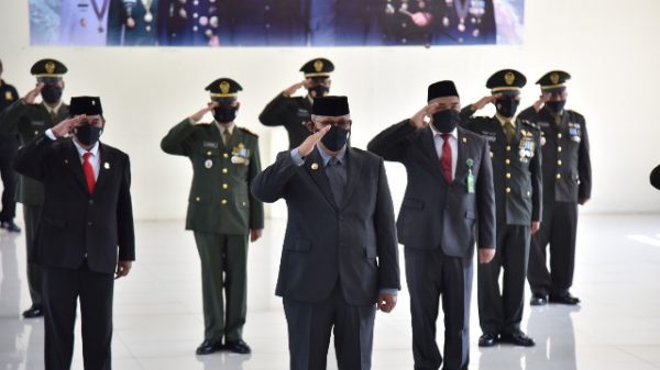 KUNINGAN (MASS)- Bupati Kuningan H Acep Purnama SH MH, bersama Forkopimda mengikuti upacara Hari Ulang Tahun (HUT) Tentara Nasional Indonesia (TNI) ke-76, secara virtual...