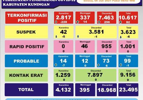 KUNINGAN (MASS)- Memasuki hari ke enam di bulan Juli Jumlah kasus positif covid-19 di Kabupaten Kuningan masih terus naik. Kenaikan hari Selasa mecapia 83...