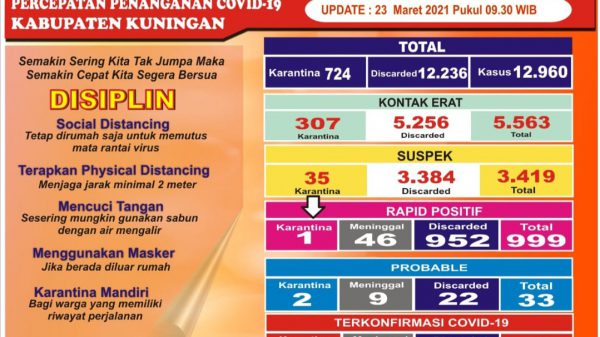 KUNINGAN (MASS) – Kasus positif covid-19 kembali naik dengan jumlah 14 orang. Sedangkann meningal bertambah 1 orang Kabar baiknya adalah kasus pasien sembuh bertambah...