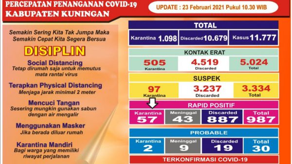 KUNINGAN (MASS)- Dari data terbaru Pikobar Jabar, ternyata Kabupaten Kuningan masuk zona merah . Dari peta resiko covid-19 di Jabar hingga 23 Februari 2021...