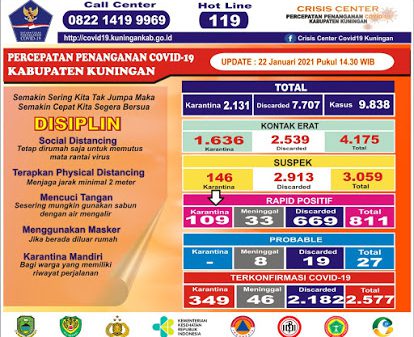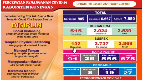 KUNINGAN (MASS) – Kenaikan kasus covid-19 terus meningkat tajam. Untuk Update Kamis (21/1/2021) kasus naik 11 orang. Sementara itu jumlah yang meninggal dunia ada orang. Sedangkan...
