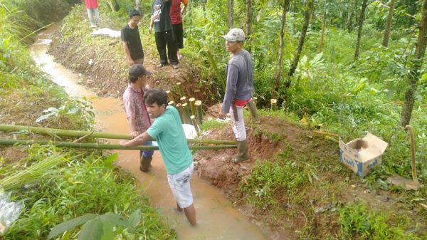 KUNINGAN (MASS)- Babinsa Desa Mekarjaya Koramil 1509/Ciawigebang, Serda Dadi Haryadi melaksanakan gotong royong bersama warga Dusun Ciganda membuat tanggul saluran irigasi di Desa Mekarjaya,...
