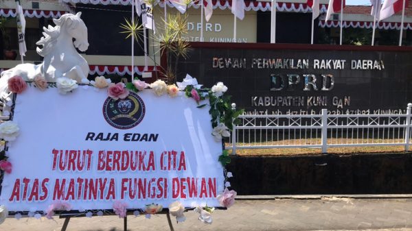 KUNINGAN (MASS) – Beberapa karangan bunga terlihat berjejer di depan gedung DPRD Kabupaten Kuningan, Kamis (26/8/2021) siang. Karangan bunga tersebut, bertuliskan ‘Turut Berduka Atas...