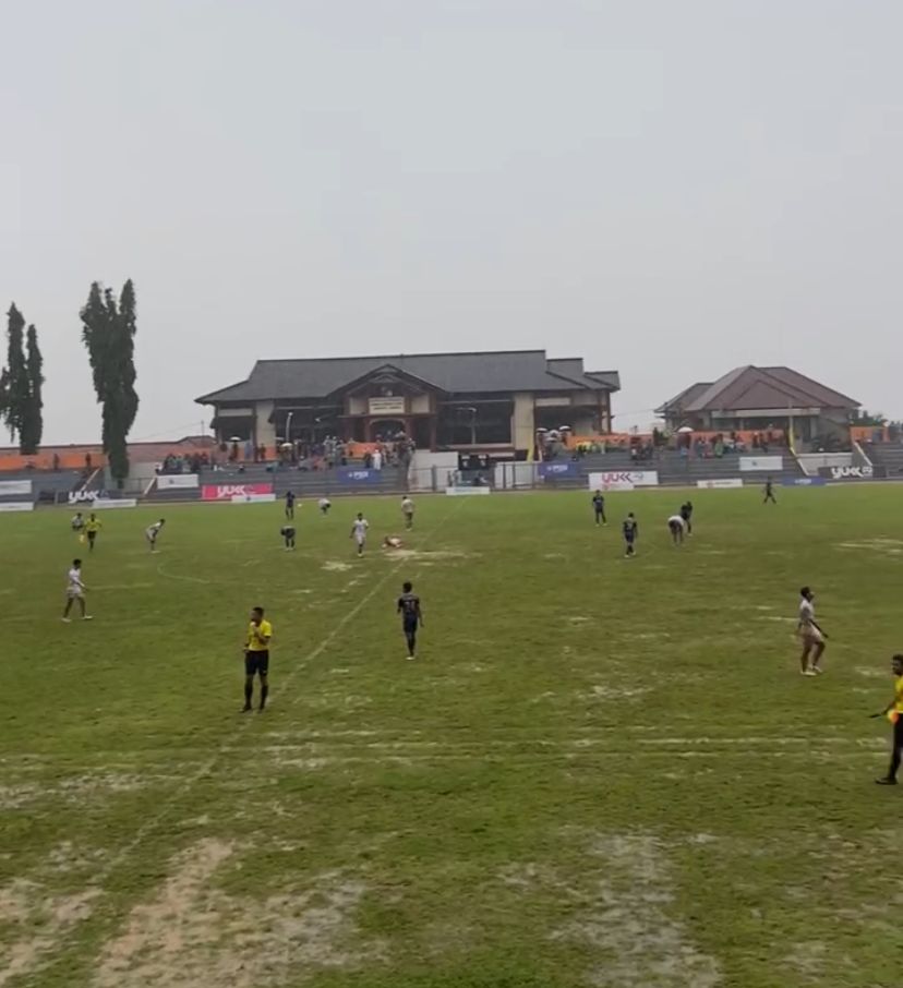 Pertandingan sepak bola antara PESIK Kuningan melawan PSB Bogor berlangsung meriah pada Minggu (16/11/2025) di Stadion Mashud Winusaputra Kuningan. (Foto : roqib)