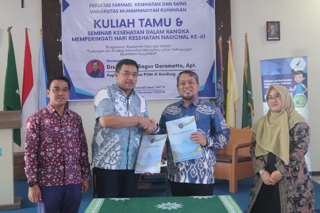 Acara sendiri dilanjutkan dengan penandatanganan Nota Kesepahaman (MoU) antara Universitas Muhammadiyah Kuningan dan Balai Besar Pengawas Obat dan Makanan (BBPOM) Bandung. Kerja sama ini dimaksudkan untuk memperkuat sinergi di bidang pendidikan, penelitian, dan pengabdian masyarakat, khususnya pada pengawasan obat dan makanan.