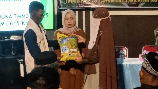 KUNINGAN (MASS)- Raut muka para ojek, supir angkot dan PKL, Sabtu (11/4/2020) pagi terlihat berseri. Mereka tiidak menyangka pagi yang cerah itu bakal mendapatkan bantuan paket sembako dari Polres Kuningan dan Kodim Kuningan.