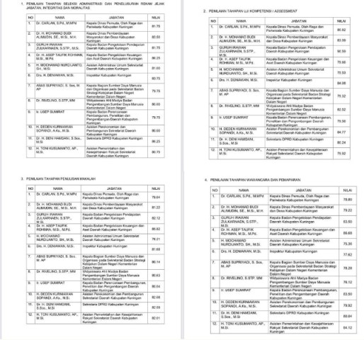 Berikut penilaian seleksi Sekda :