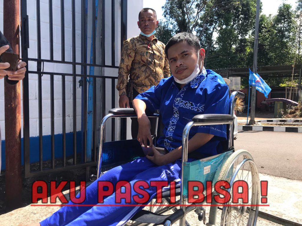 KUNINGAN (MASS) – Lelaki dengan kursi roda itu tampak duduk dengan tenang, makan di barisan depan dengan tenang. Namanya Obar Subarudin.