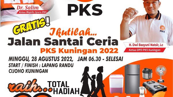 KUNINGAN (MASS) – Tidak akan lama lagi, event jalan santai akan segera dilangsungkan. Jalan santai tersebut memperebutkan total hadiah sebesar 20 juta rupiah. Diantaranya,...