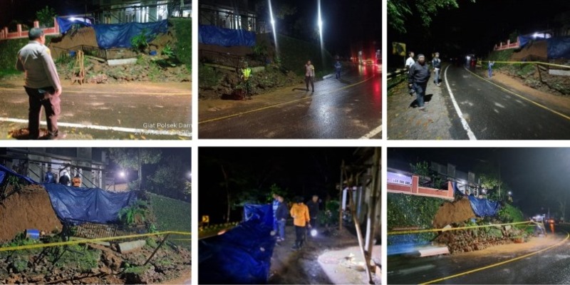 “Separuh jalan raya hampir tertutup. Kerugiannya kira-kira mencapai Rp30 juta, itu tanah (yang longsor) dekat pemukiman warga,” sebut Serda Toto. (eki)
