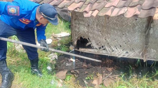 Petugas Damkar datang setelah ada laporan adanya ular di kandang ayam dari lurah Kusnadi. Setelah bertarung selama 30 menit akhirnya ular berhasil dijinakan.