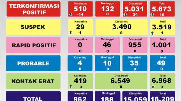 Update Jumat 14 Mei : Positif Naik 10, Sembuh Bertambah 24