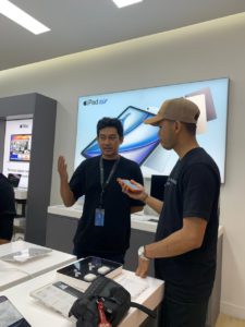Salah satu pegawai IBOX, Ben memaparkan berbagai fitur canggih dari iPhone 17 (Foto: raqib)