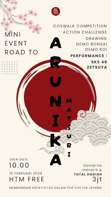 Dibungkus dalam acara Arunika Matsuri bertajuk “Membangun Kreativitas dalam Pop Cultur Jepang”, kegiatan rencananya digelar mulai pukul 10.00 WIB.
